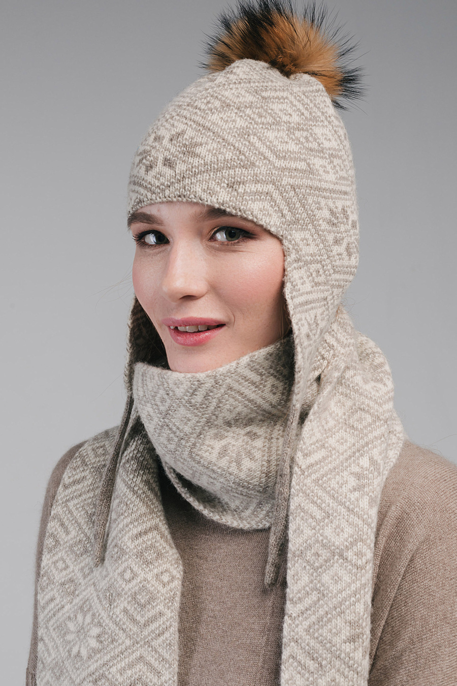 Состав: 100% натуральная шерсть, помпон из натурального меха