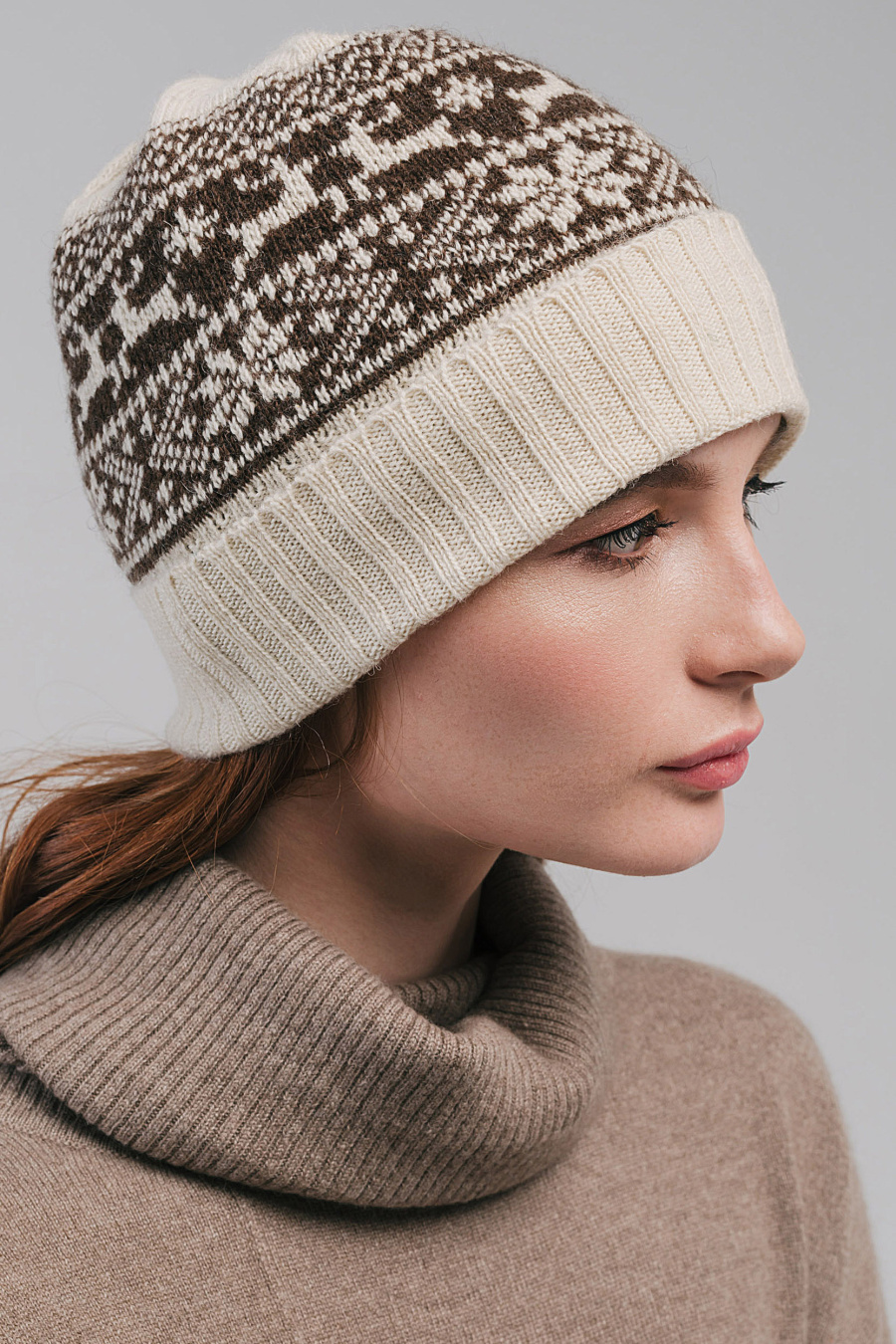 Купить Шапка-бини с отворотом из 100% шерсти TOD Оймс оптом с доставкой по России. Шапки из Монгольской шерсти оптом