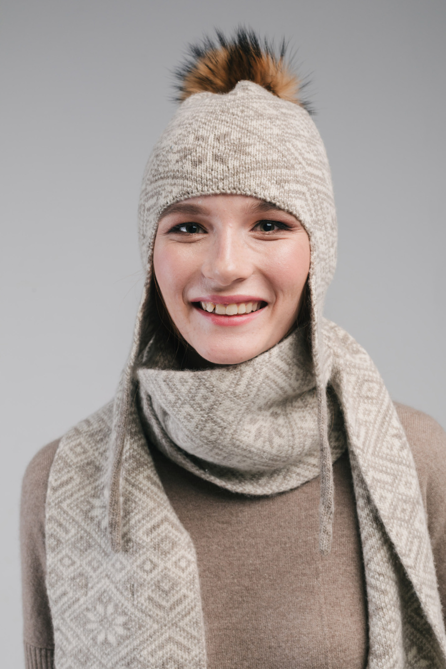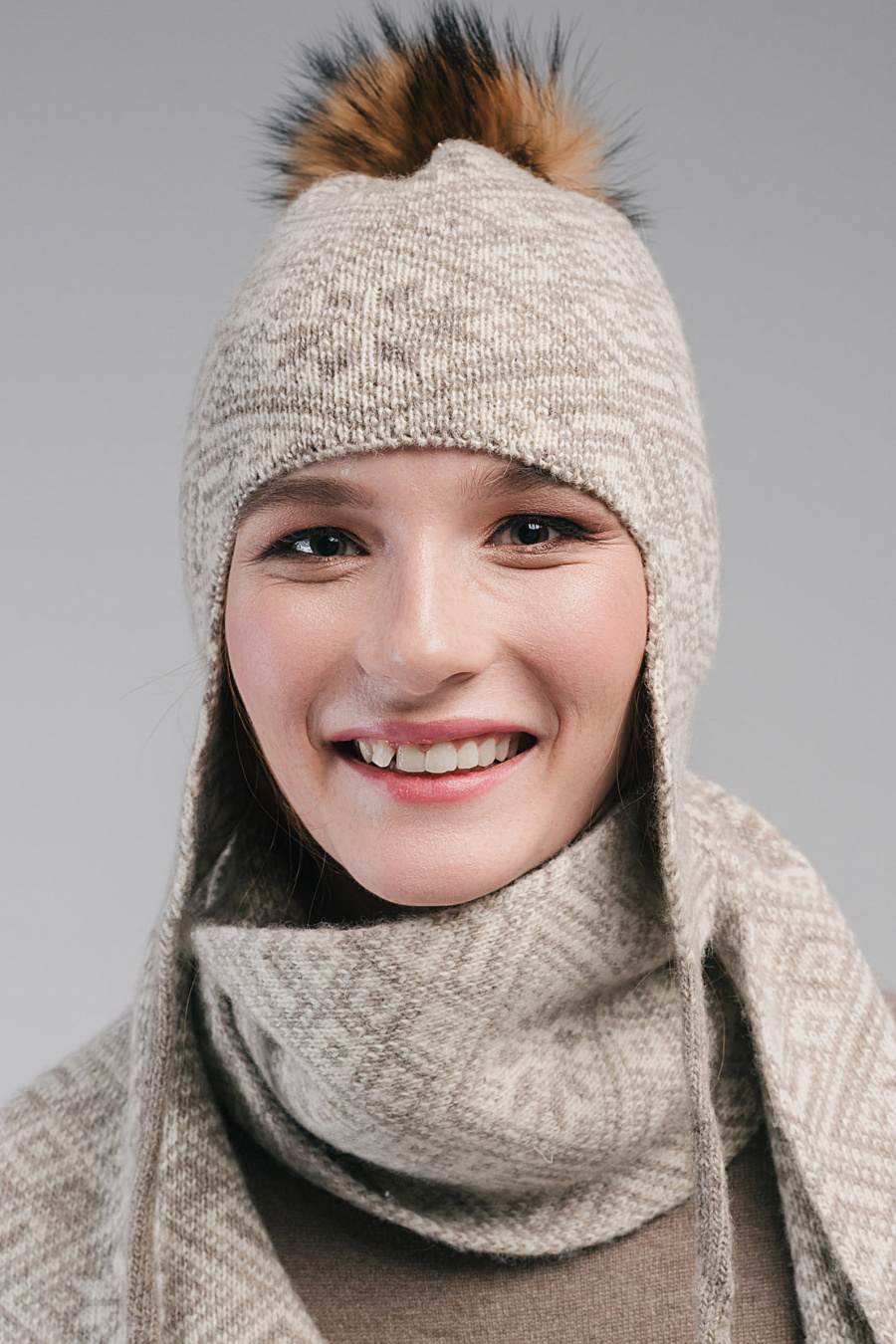 Состав: 100% натуральная шерсть, помпон из натурального меха